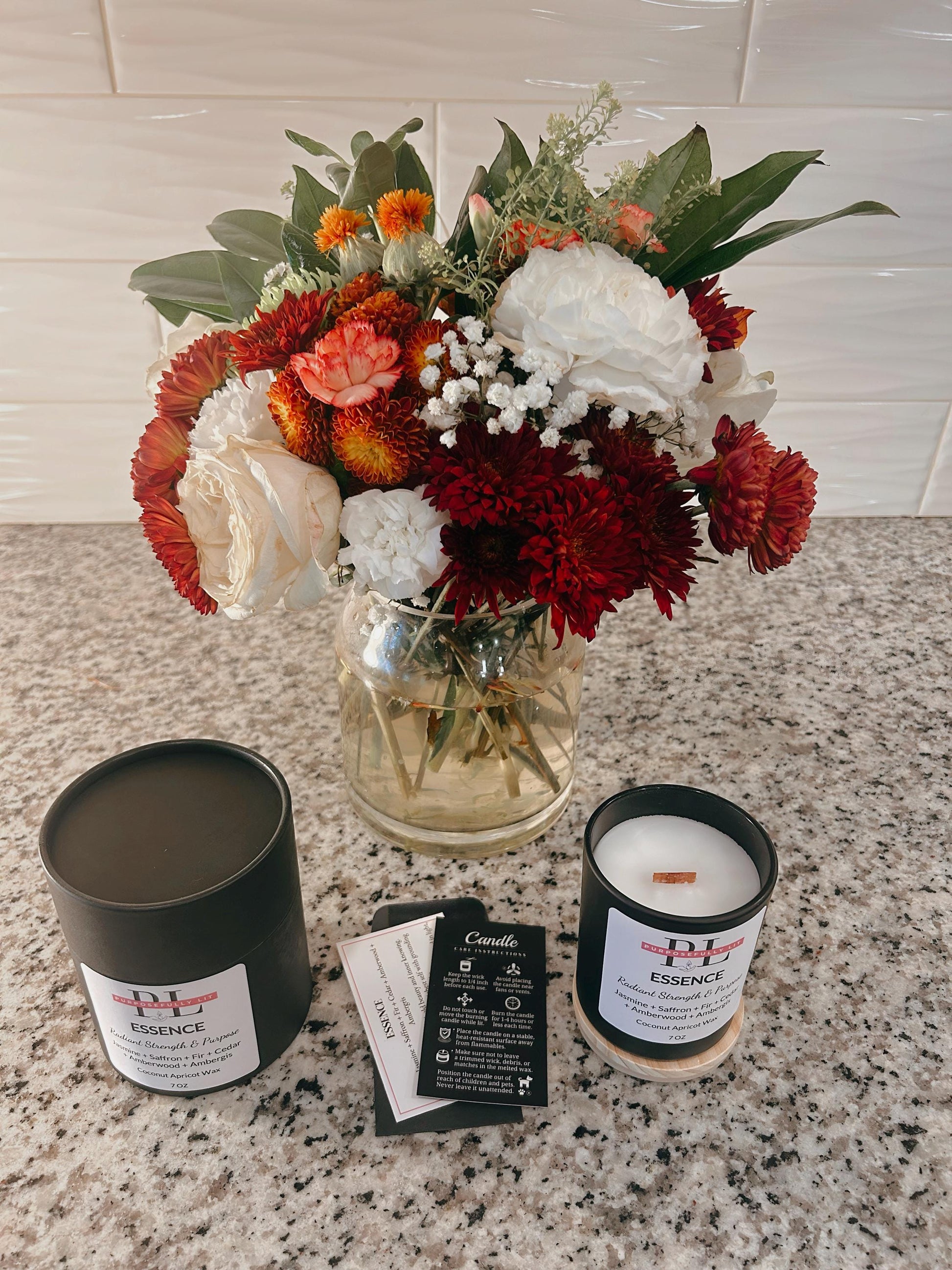 Scent: Let your inner light radiate with Essence, a layered expression of bold beauty and inner knowing. This rich fragrance blends Jasmine, Saffron, Fir, Cedar, Amberwood, and Ambergris for a sophisticated, luxurious scent. This empowering affirmation candle sets the mood for radiant strength and purpose.
